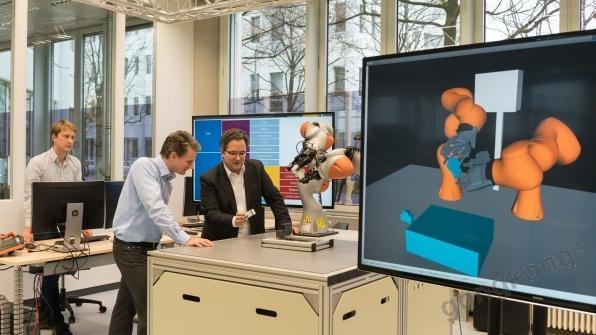 西門子——西門子中央研究院近日在慕尼黑演示了雙臂機器人的一部分,借助人工智能的高度自動化,該機器人無需編程即可自主分工協作,用于產品制造。西門子中央研究院Kai Wurm博士表示,“我們只需告訴機器人,把某個部件安裝到導軌上,它就會執行這個操作。”作為一個簡化的例子,這項任務描述了“單件定制化生產”的內涵。其中涉及加工或組裝含有不同部件的多樣化產品。機器人從關聯的軟件模型中獲取制造產品的相關信息。傳統的機器人無法理解這種CAD/CAM(計算機輔助設計和制造)模型,但新的機器人原型可以做到。從某種意義上說,這就好像機器人能夠理解不同的語言,從而不必對其運動和工藝進行編程。