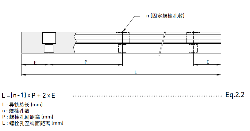 HIWIN 備有導(dǎo)軌標(biāo)準(zhǔn)長(zhǎng)度庫(kù)存供應(yīng)客戶(hù)需求。若客戶(hù)訂購(gòu)非標(biāo)準(zhǔn)長(zhǎng)度導(dǎo)軌時(shí),端面距離E的尺寸最好不要大于1/2P,防止因E的尺寸過(guò)大導(dǎo)致導(dǎo)軌裝配后端部的不穩(wěn)定,而降低直線(xiàn)導(dǎo)軌的精度。