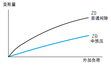 預壓力是預先給與鋼珠負荷力,亦即加大鋼珠直徑,利用鋼珠與珠道之間負向間隙給與預壓,此舉能提高,直線導軌的剛性及消除間隙;以上圖來解釋,提高預壓力可增加直線導軌剛性。但小規格建議選用輕預壓以下預壓,以避免因預壓選用過重降低其使用壽命。