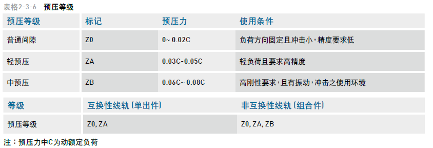 WE 系列直線導軌提供三種標準預壓,可依據用途選擇適當預壓力。