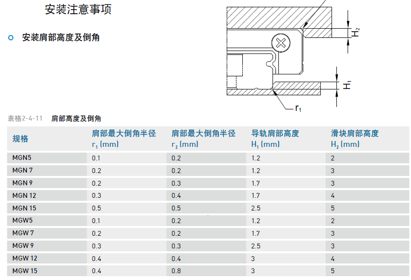 微型滾珠直線導(dǎo)軌MG系列安裝平面誤差對(duì)照表