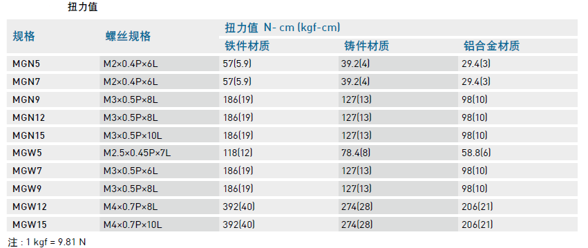 導(dǎo)軌裝配螺絲之扭力值