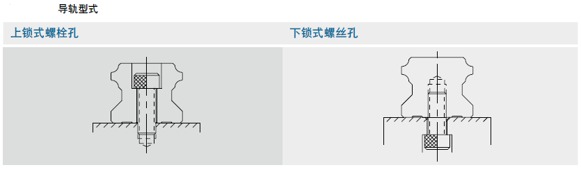 除了一般上鎖式螺栓孔導軌外,HIWIN亦提供下鎖式螺絲孔導軌,方便客戶安裝使用。